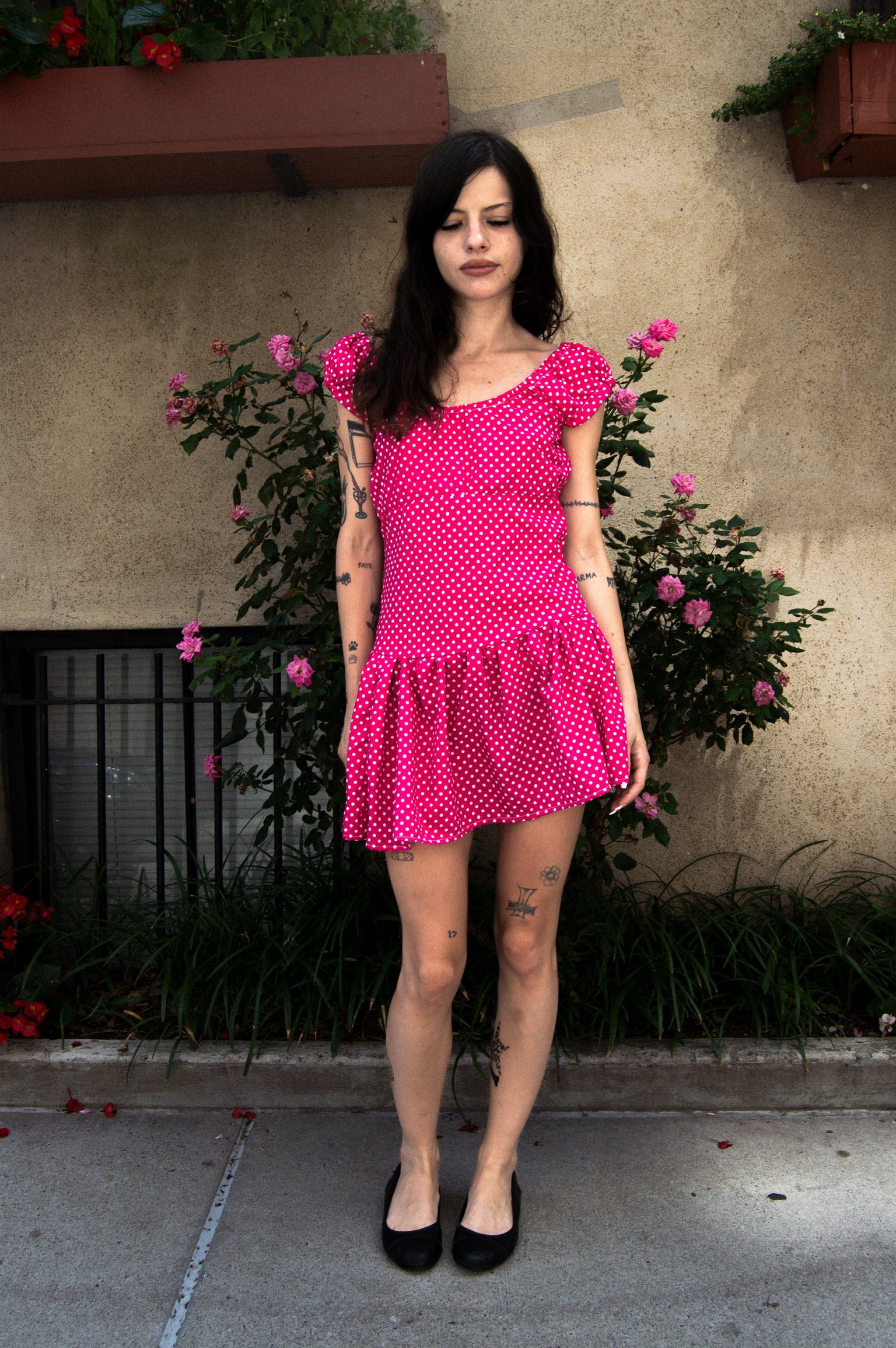 Pink Polka Dot Drop Waist Mini Dress